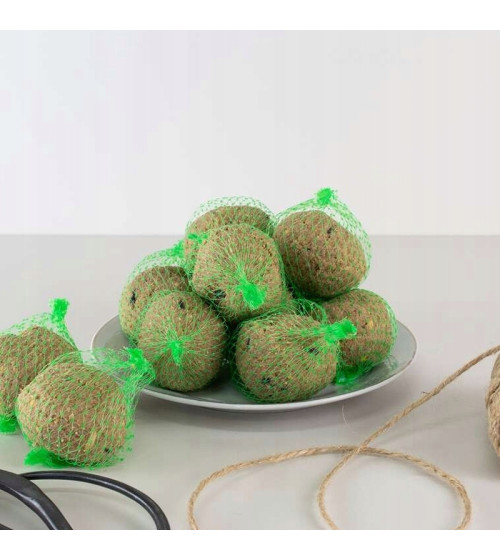Mieszanka zawiera starannie dobrane nasiona, takie jak sorgo, pszenica, słonecznik i proso, zanurzone w łoju wołowym. Kulki te są nie tylko łatwo dostępne dla ptaków, ale także zapewniają im niezbędną energię i składniki odżywcze.