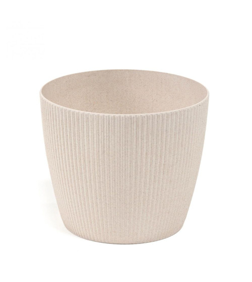Wykonana z wysokiej jakości tworzywa sztucznego. Posiada modny wzór prążków, oraz do 40% drewna w każdej doniczce.
