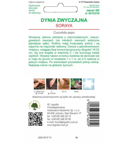 Rozstawa: w rozstawie 1x1 m, po 2-3 nasiona w jednym miejscu. Po wschodach pozostawić jedną roślinę